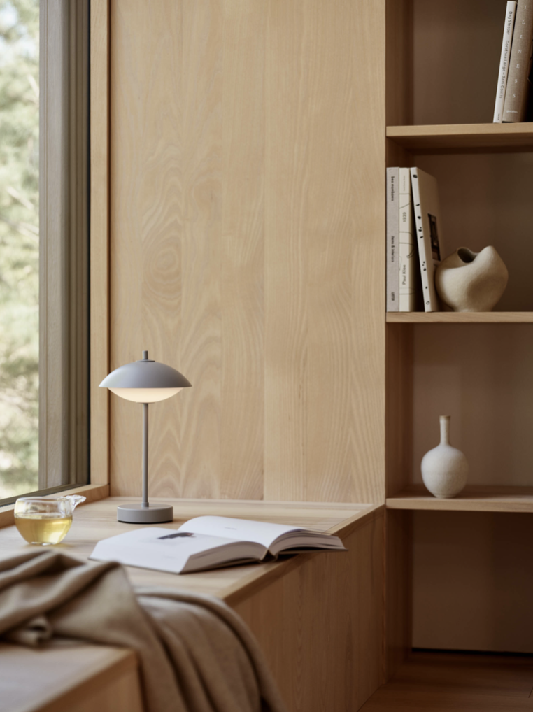 The seashell-inspired Clam™ lamp series designed by Ahm & Lund, shines a luminescent pearl of light from within. The contemporary design has a timeless aesthetic that illuminates spaces with mood-enhancing light. All lamps in the Clam™ series are designed to complement each other and work well together. The Clam™ Portable lamp is a versatile blend of form and function in a sleek, contemporary design. Made with a durable polycarbonate shade and base, an intuitive touch control for on/off/dim on top, and a sturdy steel stem for easy carrying, the lamp’s matte surface cleverly conceals fingerprints, ensuring easy maintenance and a pristine appearance. Clam™ Portable is available in three elegant colours to suit any decor —White, Nine Grey, and Dusk Blue.
