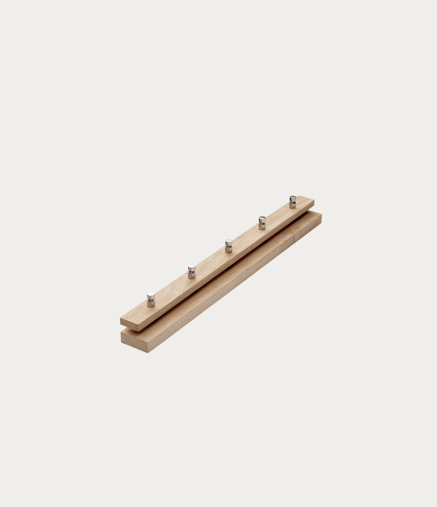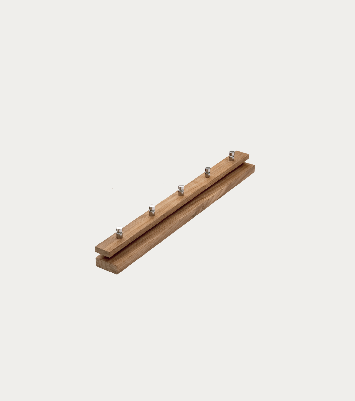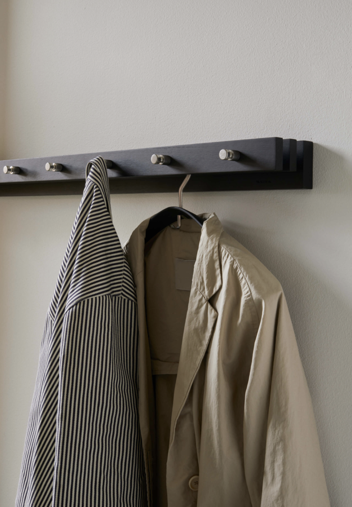 The iconic Cutter series designed in collaboration with Danish designer, Niels Hvass, is minimalistic, functional and a popular choice for hallways. Inspired by the German Bauhaus movement, the series contains many options and combinations giving a wonderful array of choice to suit every home. A simplistic coat rack with a base of wood and hooks made from stainless steel. The natural materials are long lasting and provide an easy and elegant way to hang your coats, hats, bags and scarves.