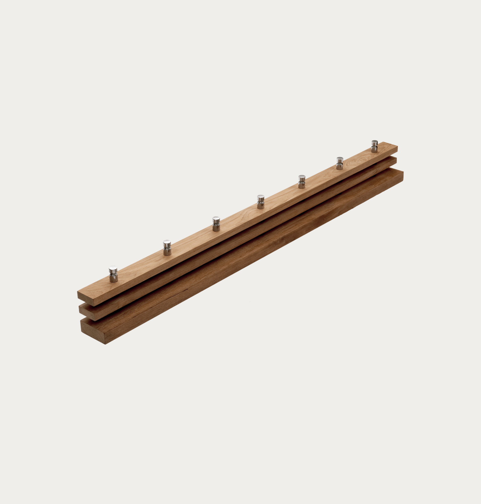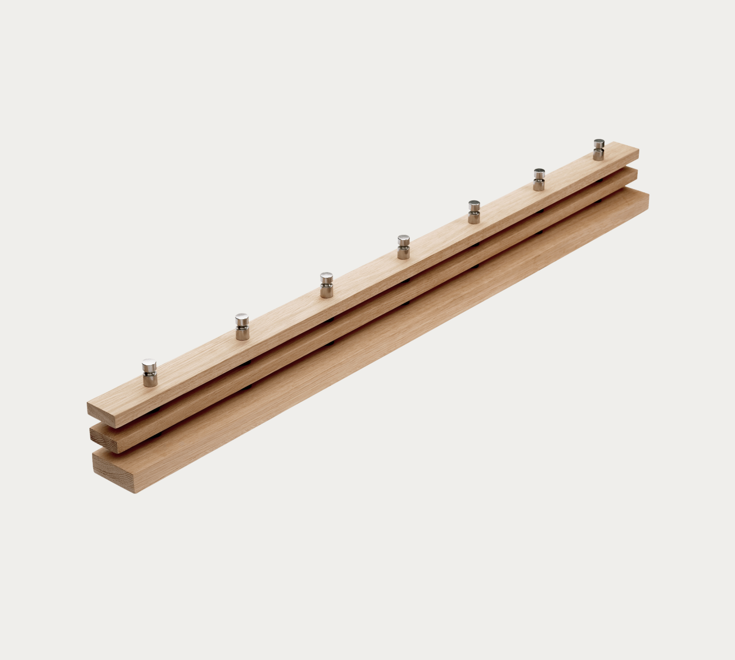 The iconic Cutter series designed in collaboration with Danish designer, Niels Hvass, is minimalistic, functional and a popular choice for hallways. Inspired by the German Bauhaus movement, the series contains many options and combinations giving a wonderful array of choice to suit every home. A simplistic coat rack with a base of wood and hooks made from stainless steel. The natural materials are long lasting and provide an easy and elegant way to hang your coats, hats, bags and scarves.