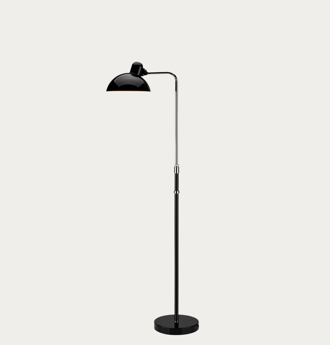 The renowned KAISER idell lamp is characterised by Christian Dell’s ability to create elegant design with the basic hallmarks of Modernism: geometric shapes. Today, KAISER idell is widely recognised as a symbol of noble Bauhaus design, exquisite choice of material and precise engineering. The 6580-F Luxus floor lamp, designed by Dell in 1936, is adjustable in height. The ball-jointed lampshade has an adjustable tilt head for directional lighting.