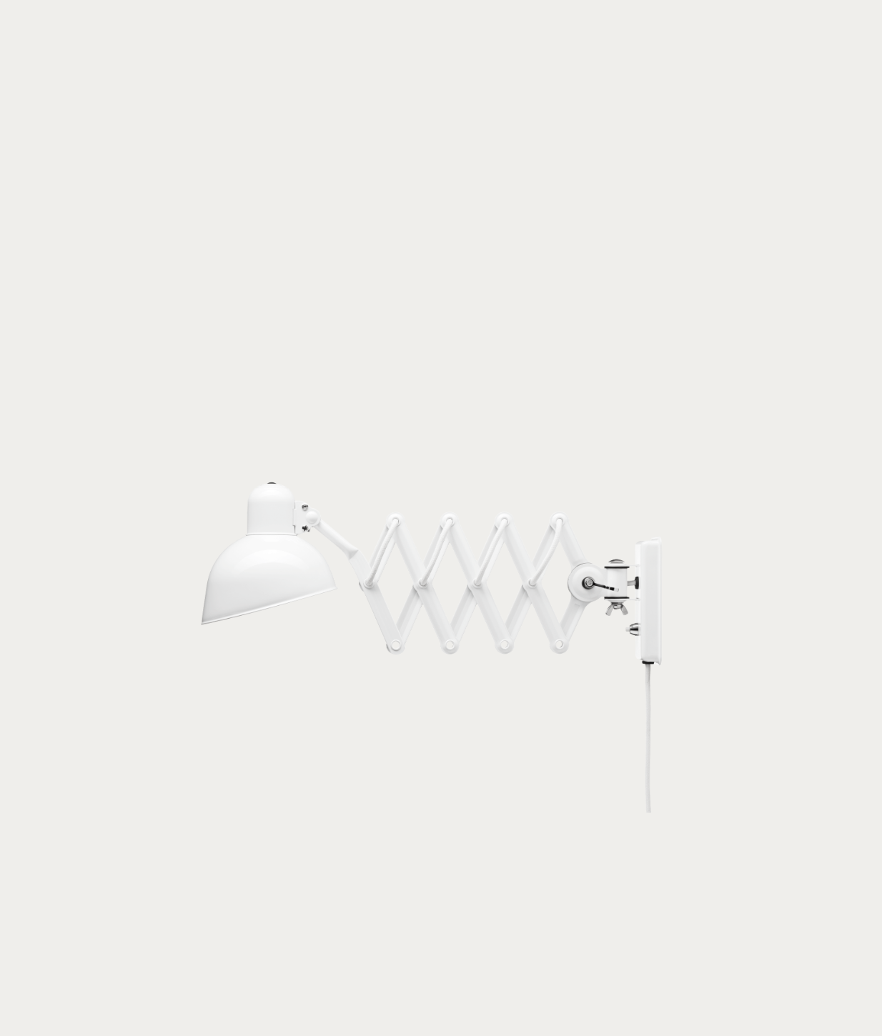 The renowned KAISER idell lamp is characterised by Christian Dell’s ability to create elegant design with the basic hallmarks of Modernism: geometric shapes. Today, KAISER idell is widely recognised as a symbol of noble Bauhaus design, exquisite choice of material and precise engineering. Dell’s patented swivel-joint shade is combined with an extendable scissor arm on the 6718-W to bring flexible, focused light out into the room.