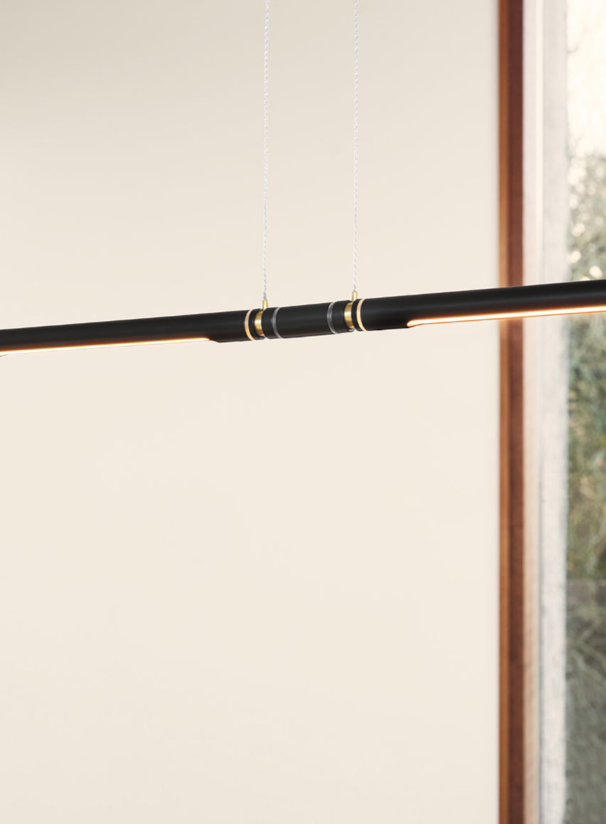 The award-winning Oneline™ pendant by Kasper Friis Kjeldgaard looks to the pure forms of Poul Kjærholm’s iconic furniture designs. Anything but ordinary, the refined pendant is encased in reflective metal – offered in three beautiful finishes: stainless steel, brushed brass and steel with black PVD coating. The possibility of controlling the light level comes through Zigbee driver technology which is compatible with the most common dimming apps. Please note a hub is required to activate dimming, e.g. Philips Hue hub or the IKEA DIRIGERA hub. Each Oneline™ pendant includes a driver that can be installed above or below the ceiling.