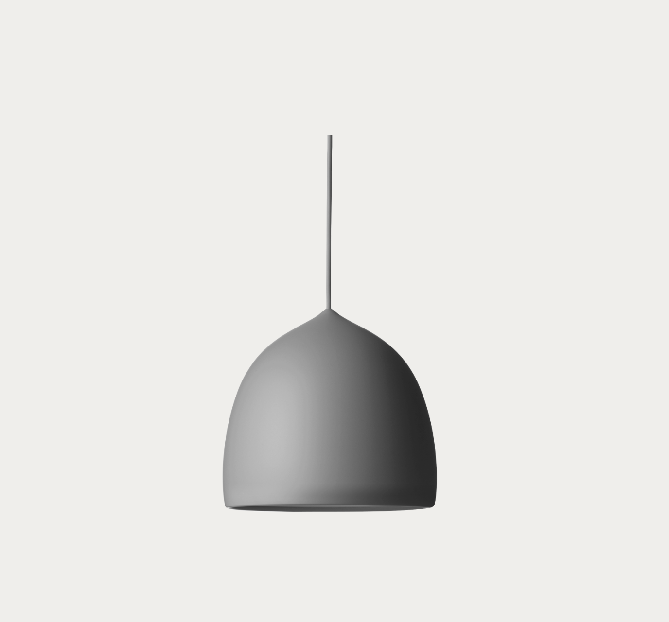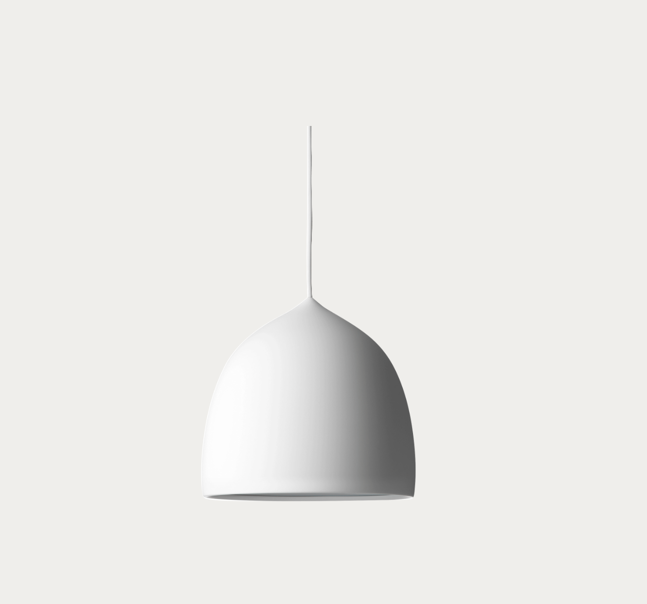 In the making of the Suspence™ lamp series, the designers sought to translate movement into a physical shape: a water droplet suspended in air. The final form appears as an uninterrupted whole, enhanced by its monochrome expression and natural soft curve.