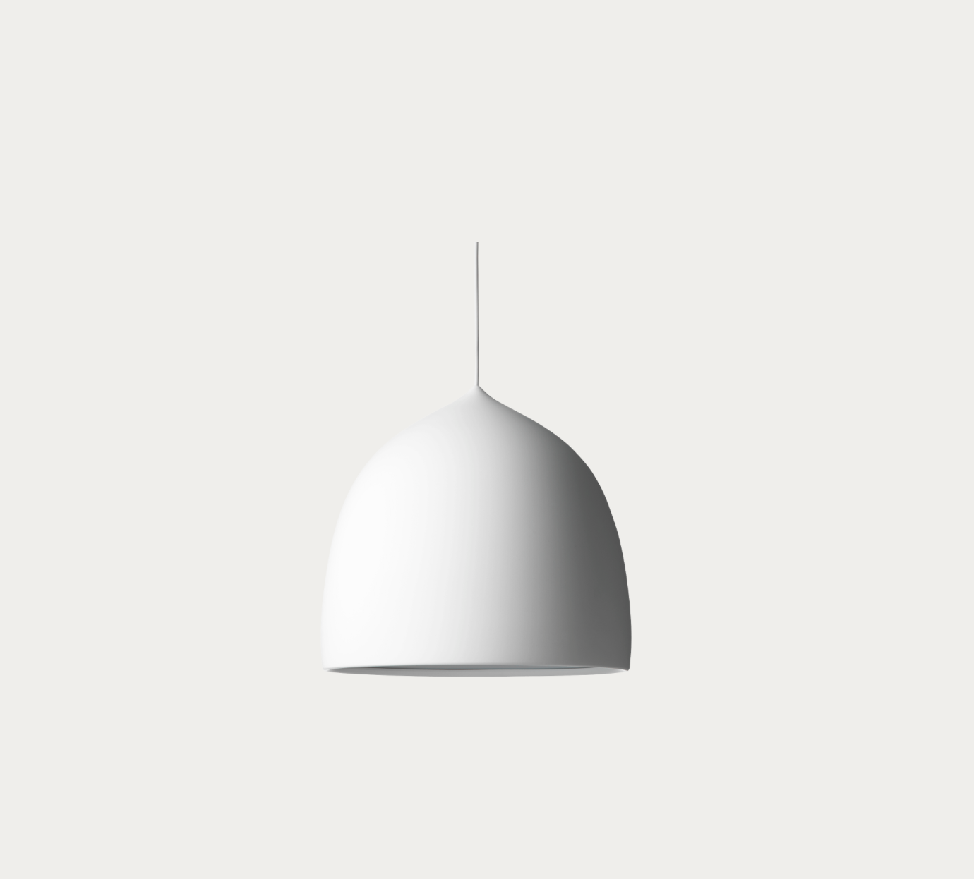 In the making of the Suspence™ lamp series, the designers sought to translate movement into a physical shape: a water droplet suspended in air. The final form appears as an uninterrupted whole, enhanced by its monochrome expression and natural soft curve.